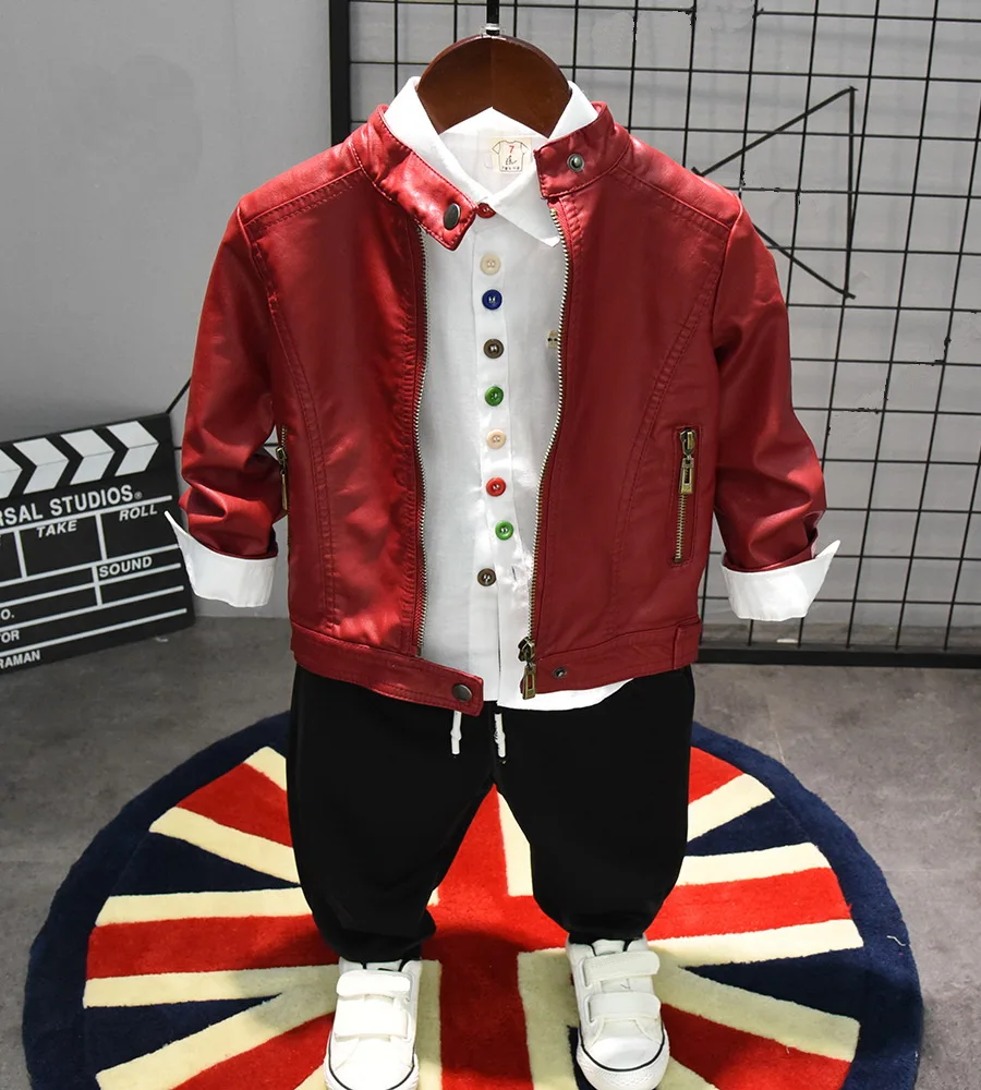 Sale!3PCS Suits Kids Boys Clothes Sets Child Faux leather jacket + shirt + jeans Spring Autumn Children Boys Sets Children ClothingRated 5.00 out of 5