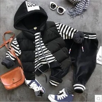 Sale!Autumn winter Baby Clothing Sets Boys Clothes Sets boys Thick vest + Plus hoodie + Plush pants 3Pcs/Sets Child Clothing set