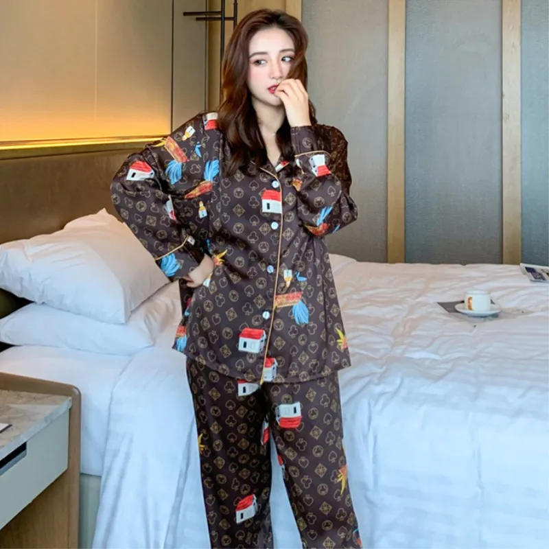 Sale!2020 New Summer Pajamas For Women Soft Nighty Brown Silk Nightgown For Lovers Sleepwear Clothing set