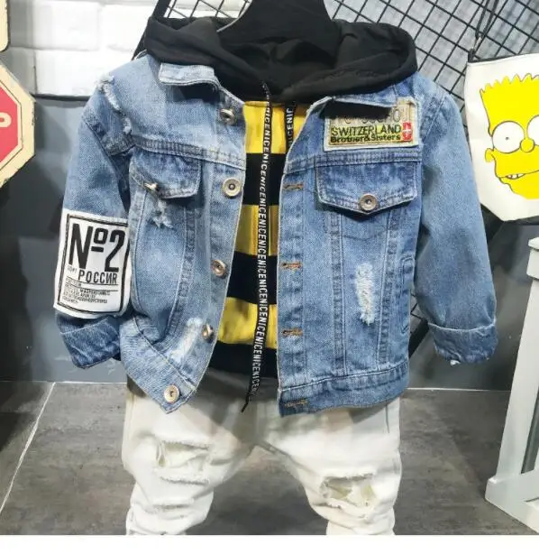 A16 spring and autumn children’s denim fashion hooded personality bottoming tide three-piece set 2020$115.71 Select options