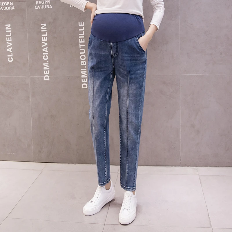 Sale!795# Autumn Fashion Denim Maternity Jeans Elastic Waist Staight Loose Pants For Pregnant Women Pregnancy Belly Harem Trousers