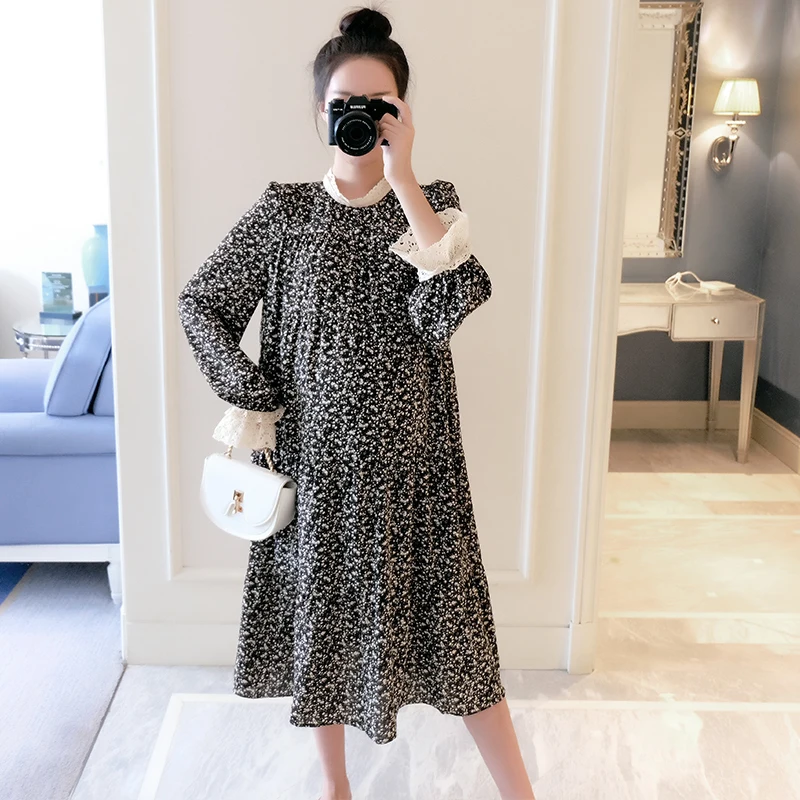 9853# 2020 New Spring Korean Fashion Maternity Long Dress Elegant Floral Printed Loose Clothes for Pregnant Women Pregnancy Wear$89.58 Select options