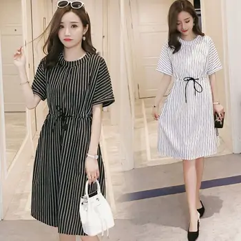 995# Vertical Striped Maternity Nursing Dress Summer Fashion Slim Waist Clothes for Pregnant Women Pregnancy Feeding Clothing$65.88 Select options