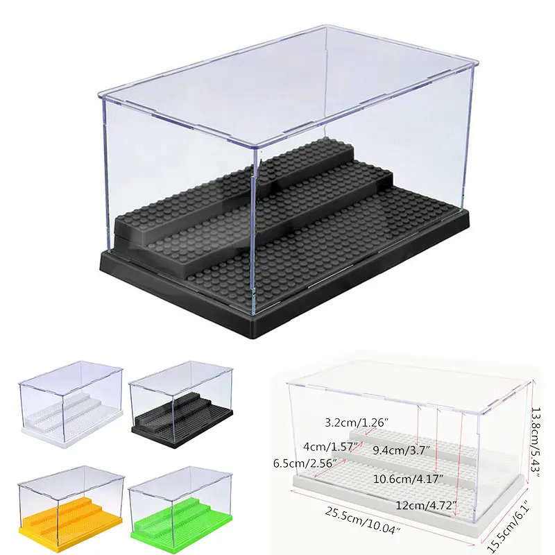Sale!1pc 3 Steps Display Box Dustproof ShowCase Gray Base Compatible All Brands Blocks Acrylic Plastic Display Case 25.5X15.5X13.8cm