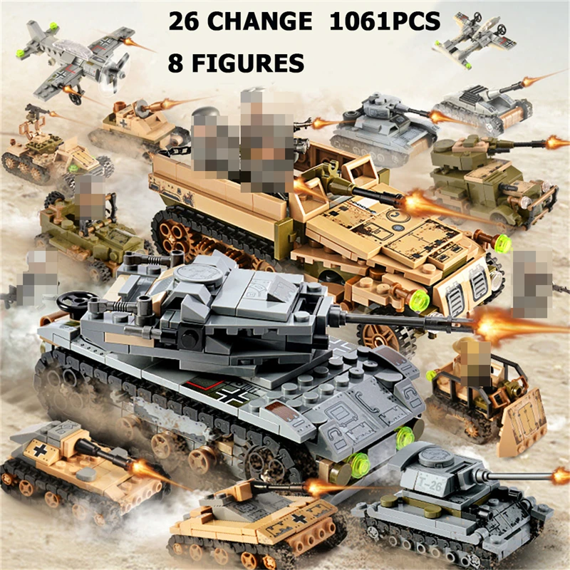 Sale!1061PCS Tank Building Blocks Toys Mini figures Vehicle Aircraft Boy Educational Block Military Compatible LegoINGlys Bricks