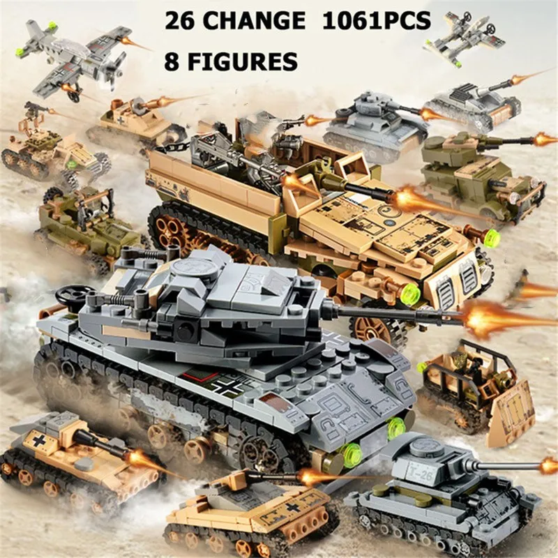 Sale!1061 PCS Military Tank Building Blocks Helicopter Toy For Boys Vehicle Aircraft Educational Block Military Compatible