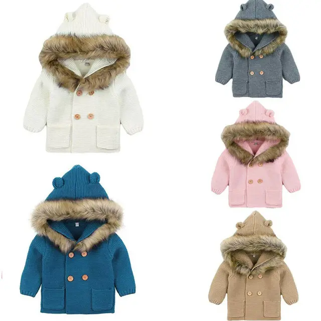 0-2Y Newborn Baby Hooded Jacket Cardiagan Coat Sweater Winter Warm Sweater New