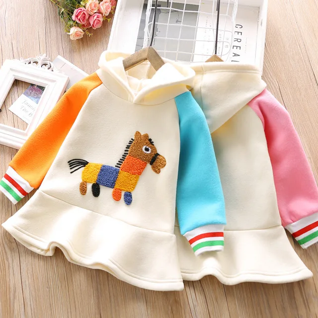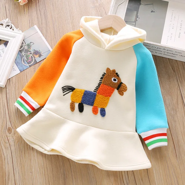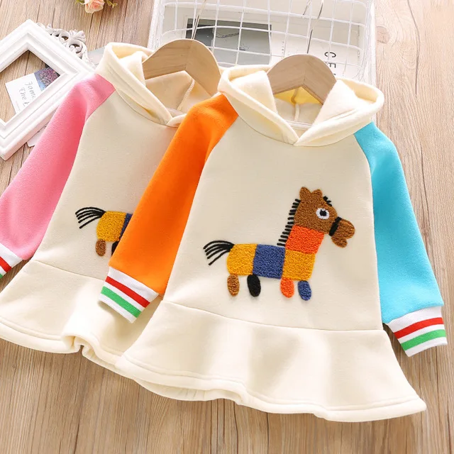 1 2 3 4 5 Years Toddler Girls Sweatshirts Cartoon Pony Long Sleeve Stitching Hoodies Dress Thicken Kids Clothing 1 2 3 4 5 Years