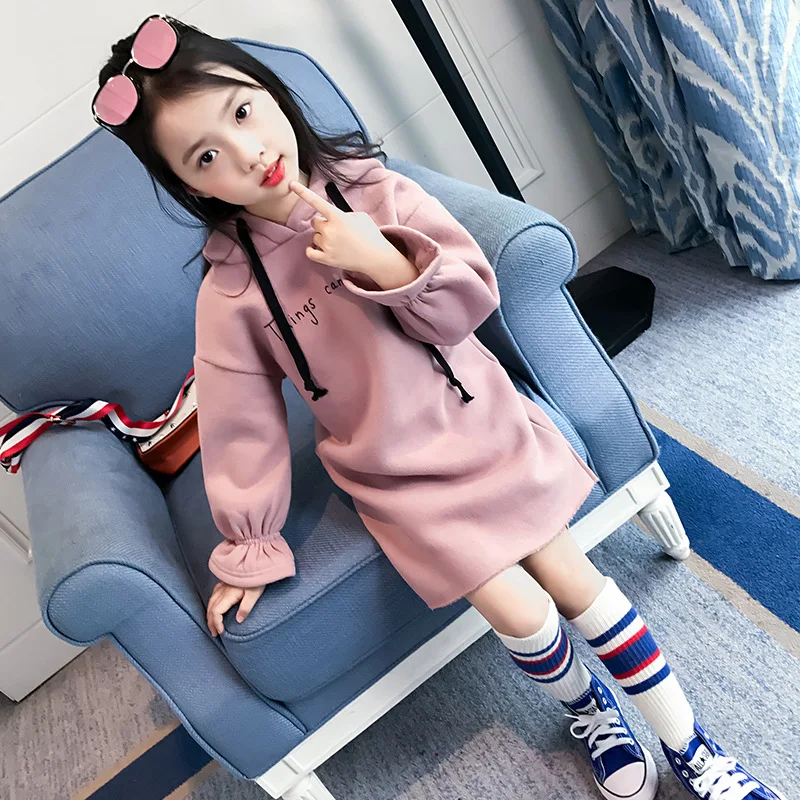 New Korean Version of The Girl Windproof Hooded Jacket Autumn and Winter with Ruffled Cuffs Big Children Long Letter Sweater$53.94 – $59.07 Select options