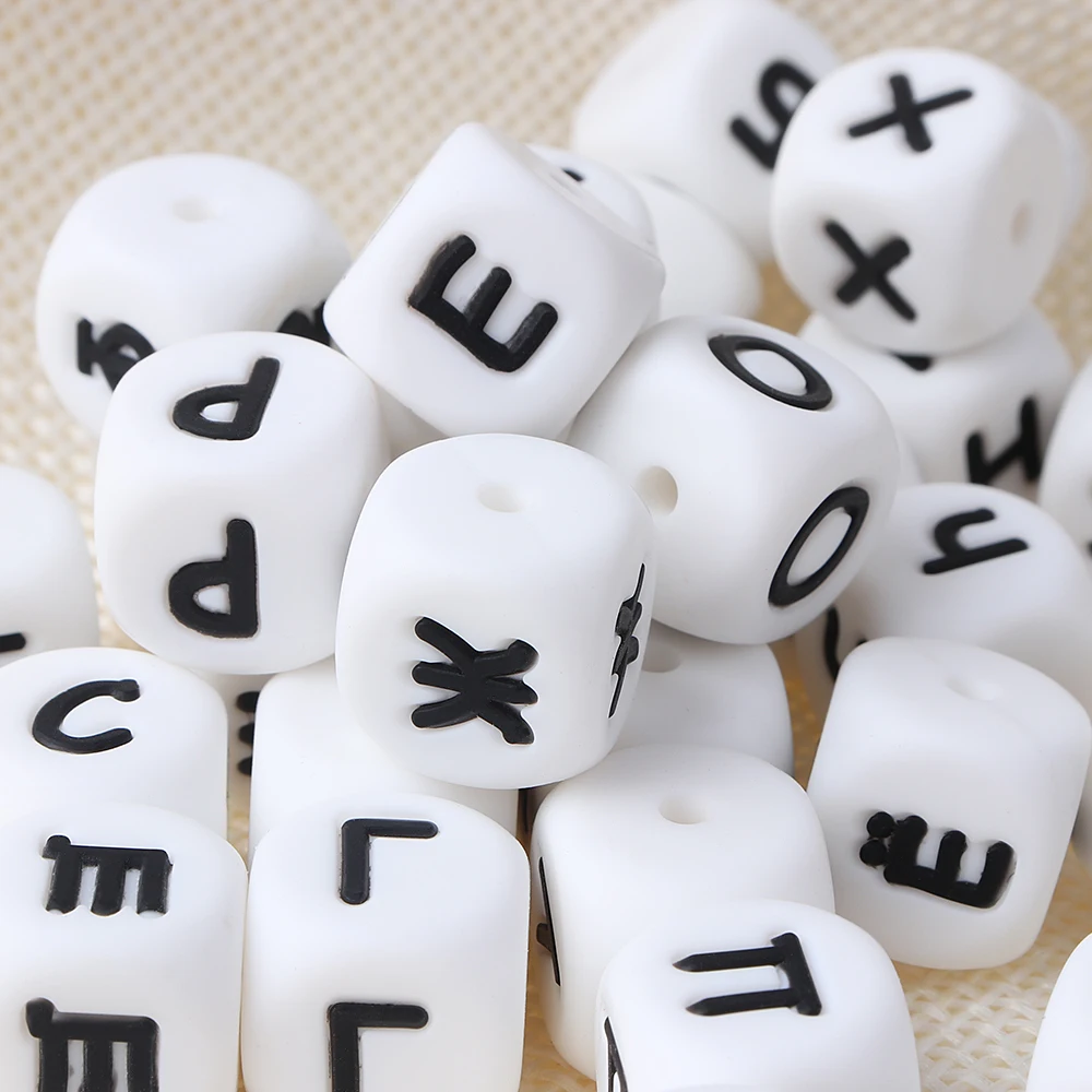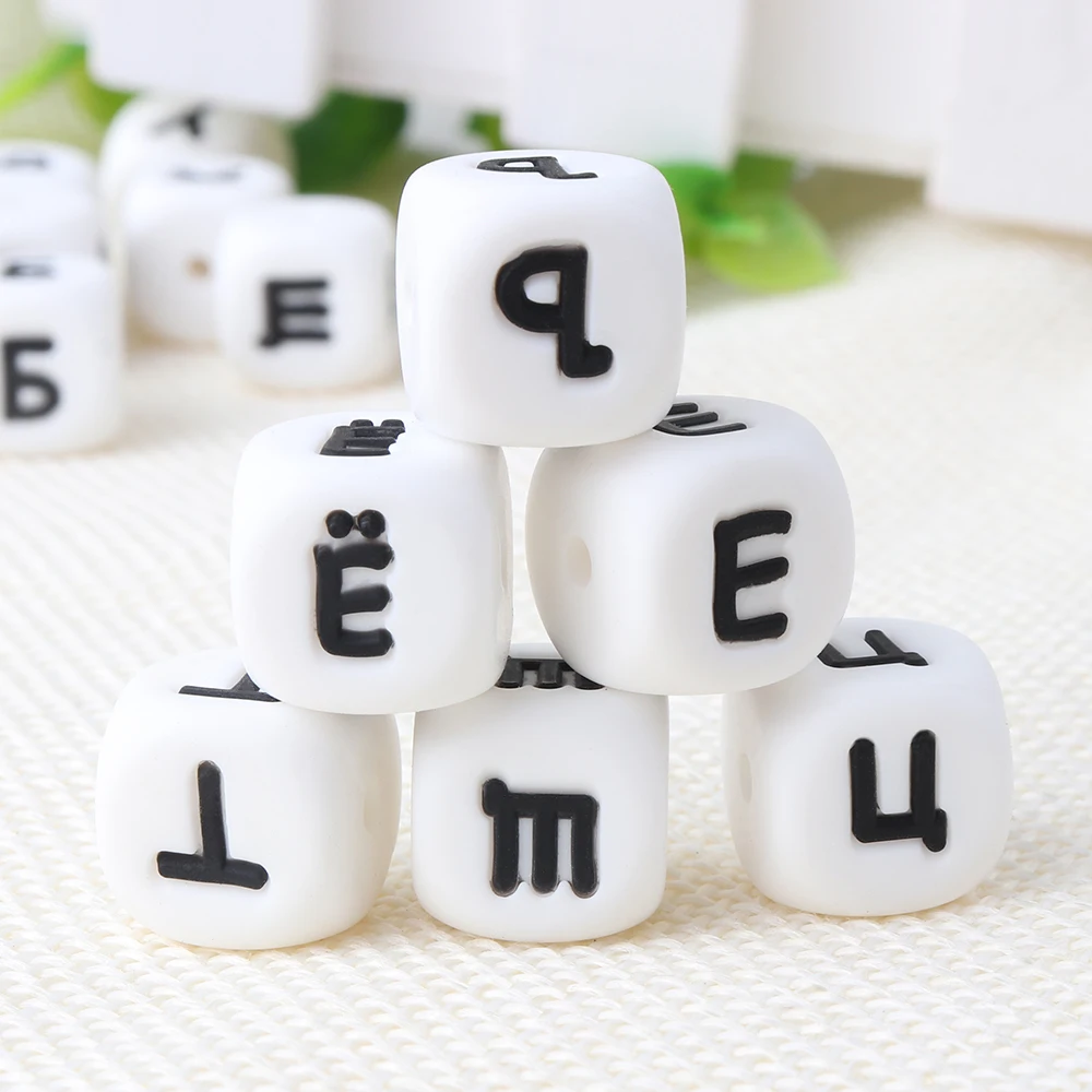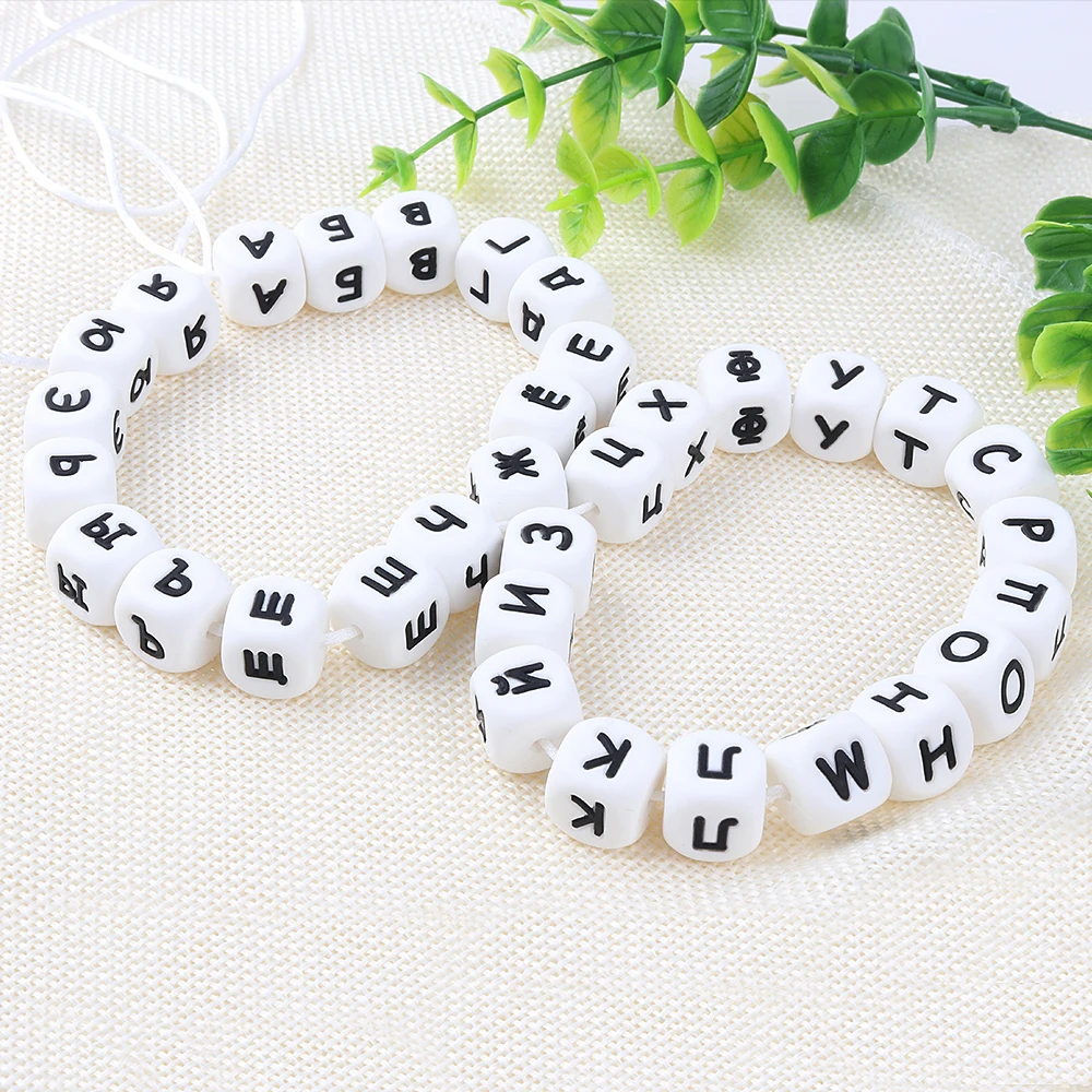 100pcs/set Russian letters Alphabet Beads Baby Teething Beads DIY Baby Name Pacifier Chain Silicone Baby Teether 12mm