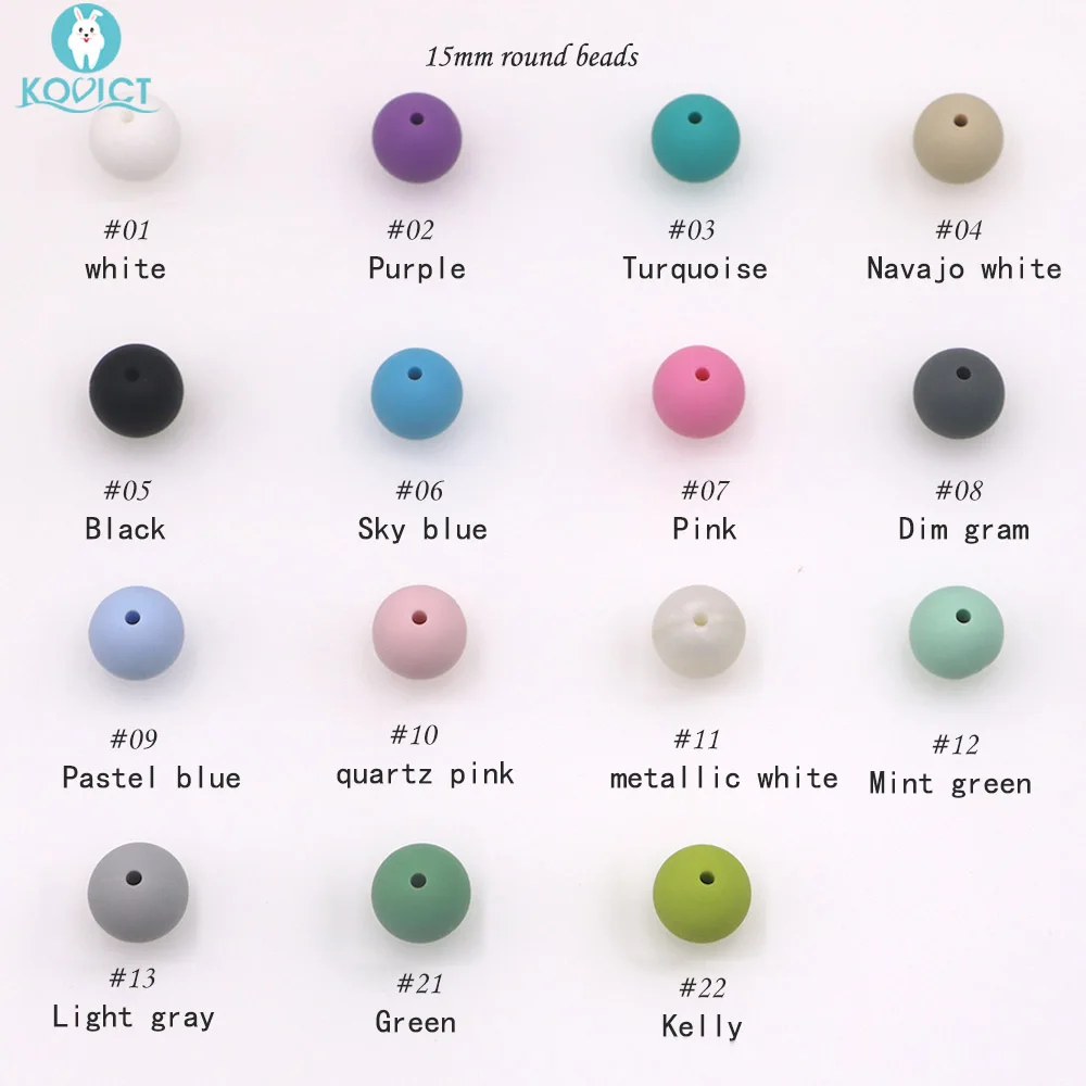 Sale!Kovict 500pcs optional 15mm Silicone round Beads rodent Diy For Necklace Chews Pacifier Chain Clips Beads Soft Texture Silicone