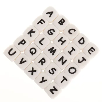 Sale!Fkisbox 200pcs Alphabet Silicone English Letters Beads Cube BPA Free Baby Teethers Personalized Name DIY Rodent Teething PendantRated 5.00 out of 5