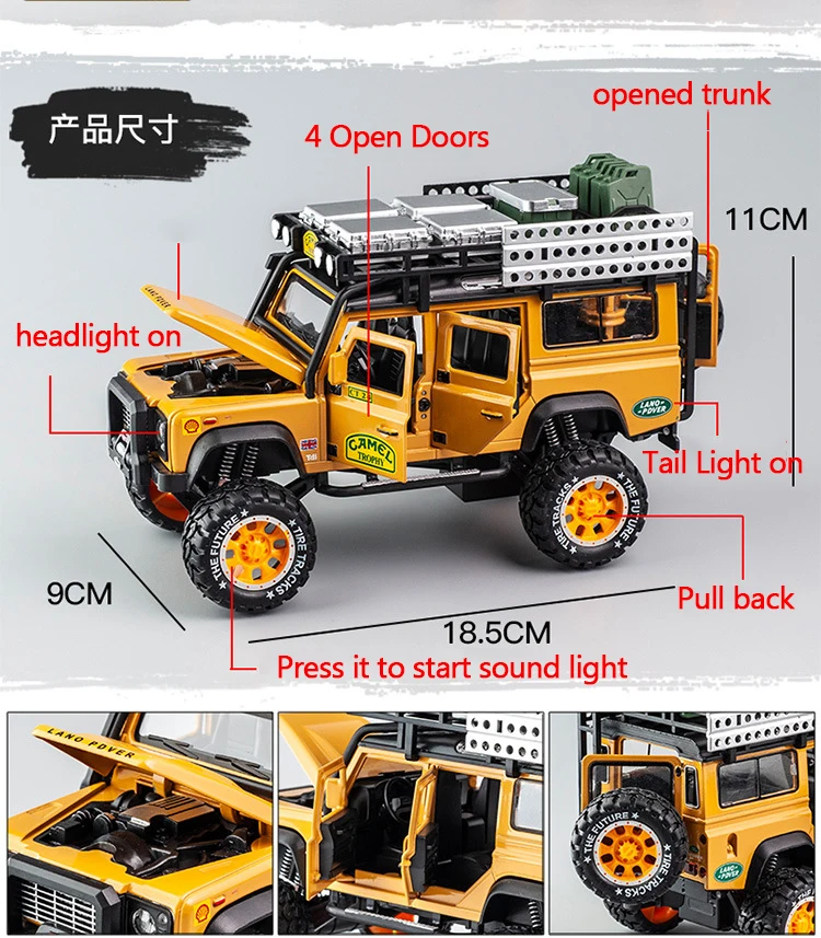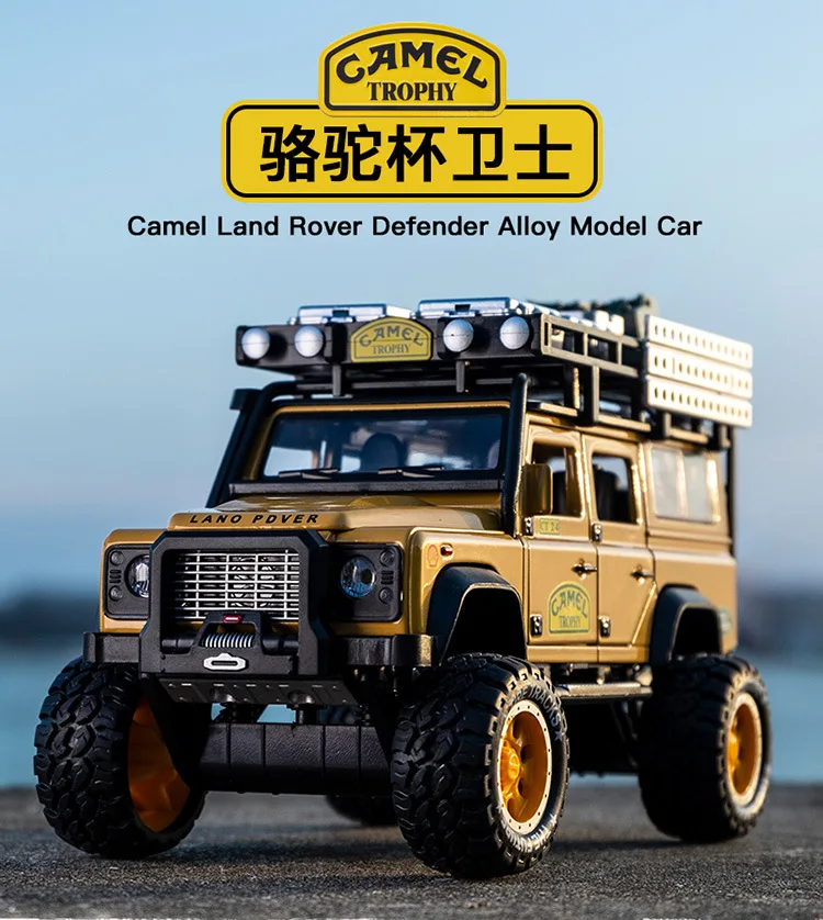 1:28 Diecast Toy Vehicles Camel Defender Model Car Toys Trophy Pull Back Sound&Light Collection For Children Birthday Gifts