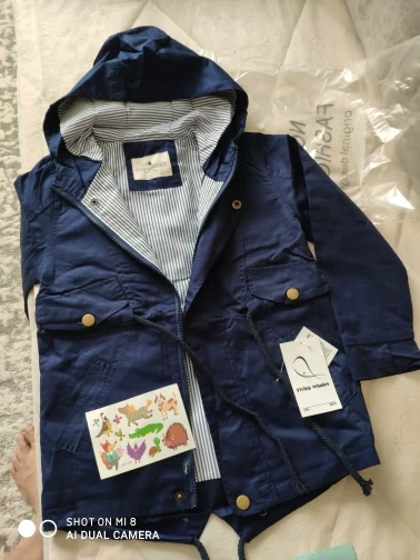 The jacket came on time, size 3 T for height 98 cm just right. For late spring-summer. Fabric, As stated, cotton. Recommend.