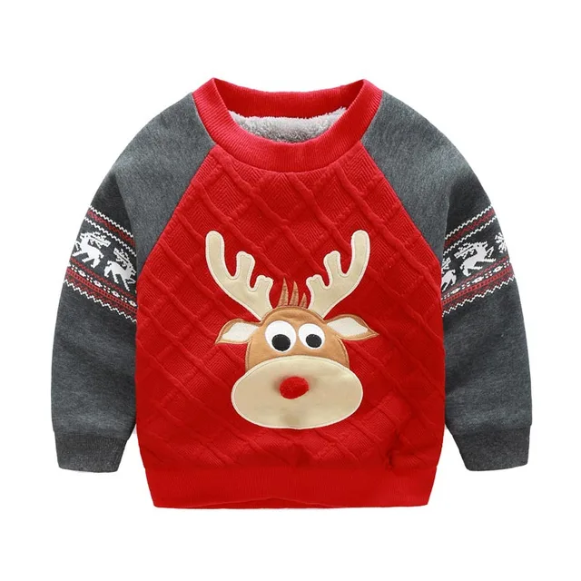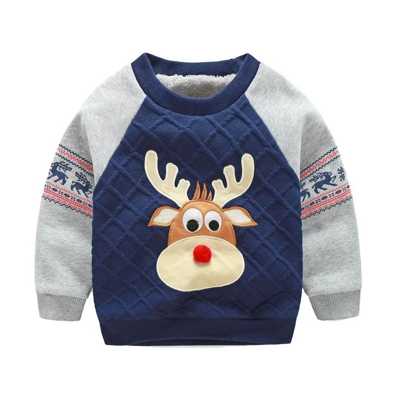 2017 Baby Kids Cartoon Winter Reindeer Christmas Wool Fleece T-shirt Hoodies O-Neck Extra Thick Sweatshirts