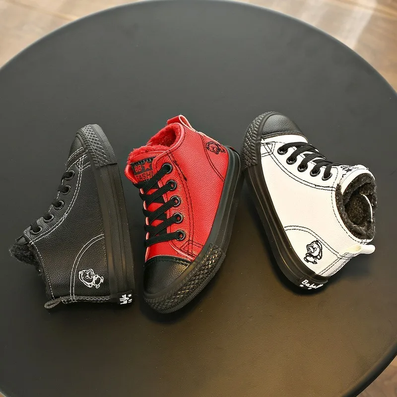 2018 New Winter Boots Girls Children Cotton-padded Shoes Boys Artificial Leather Warm Kids Casual Shoes Winter Waterproof