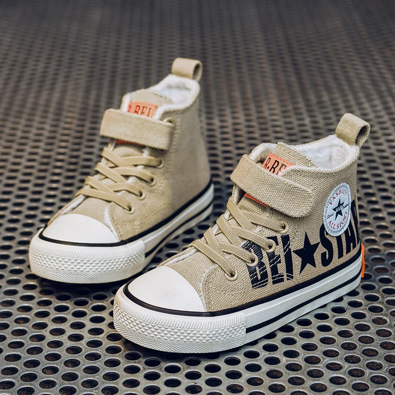 2019 New Autumn Winter Children Canvas Cotton Padded Sneakers Boys Girls Sports Running Shoes for Kids Students Velvet Footwear
