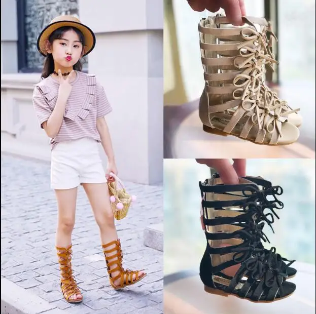 2019 Summer gladiator boots High-top fashion Roman girls sandals kids sandals toddler baby sandals girls high quality shoes