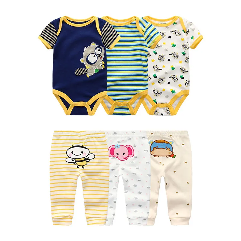 3Pcs/lots baby clothes and 3Pcs/lots newborn baby pants Cotton Short sleeve bodysuits and long pants ropa de bebe