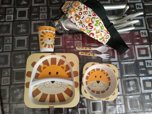 15 reviews for 5pcs/sets Baby Dish Tableware Set Cartoon Fork Feeding Dishes for Kids Utensils Natural Bamboo Fiber Bowl With Cup Spoon Plate