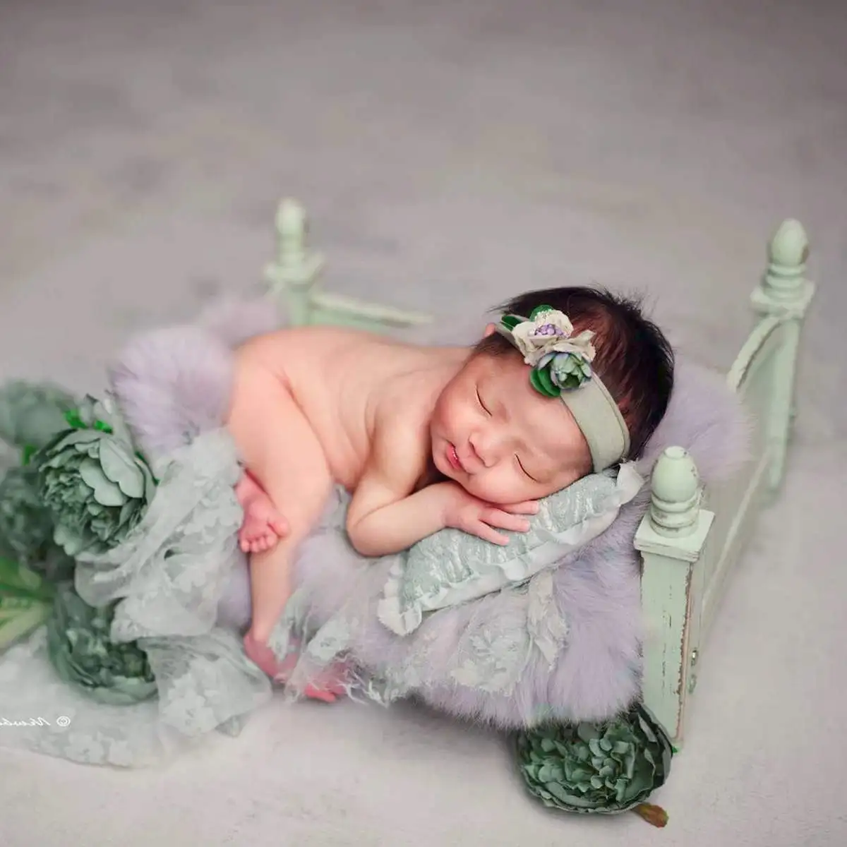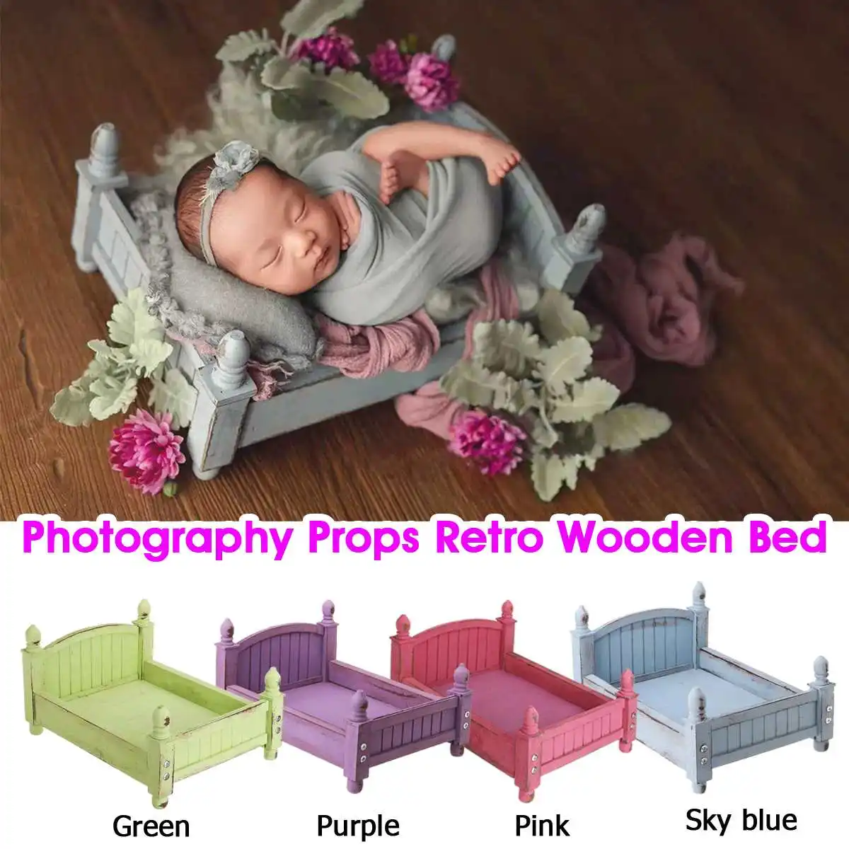 Bioby Pink /Purple /Green /Sky Blue Newborn Photography Shoot Props Retro Wooden Bed Baby Studio Photography Background Cribs