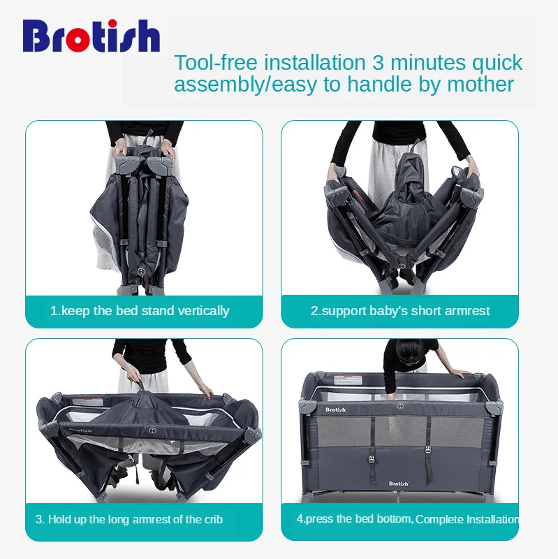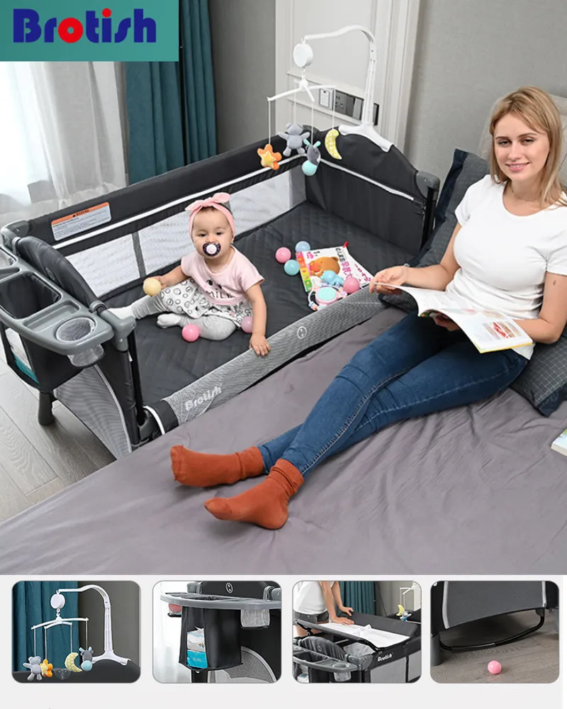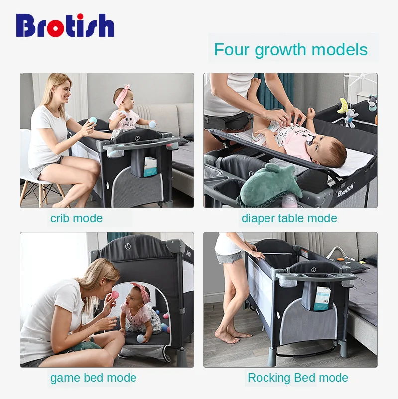 Brotish Crib splicing large bed removable bb multi-function portable folding newborn baby bedside bed cradle bed
