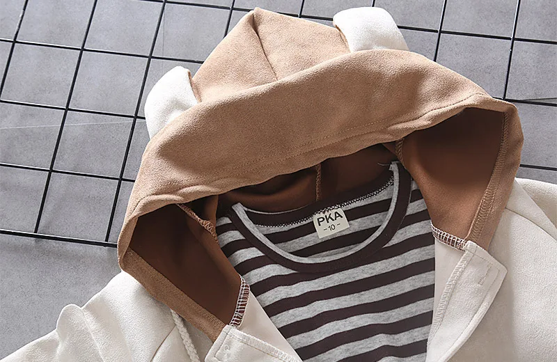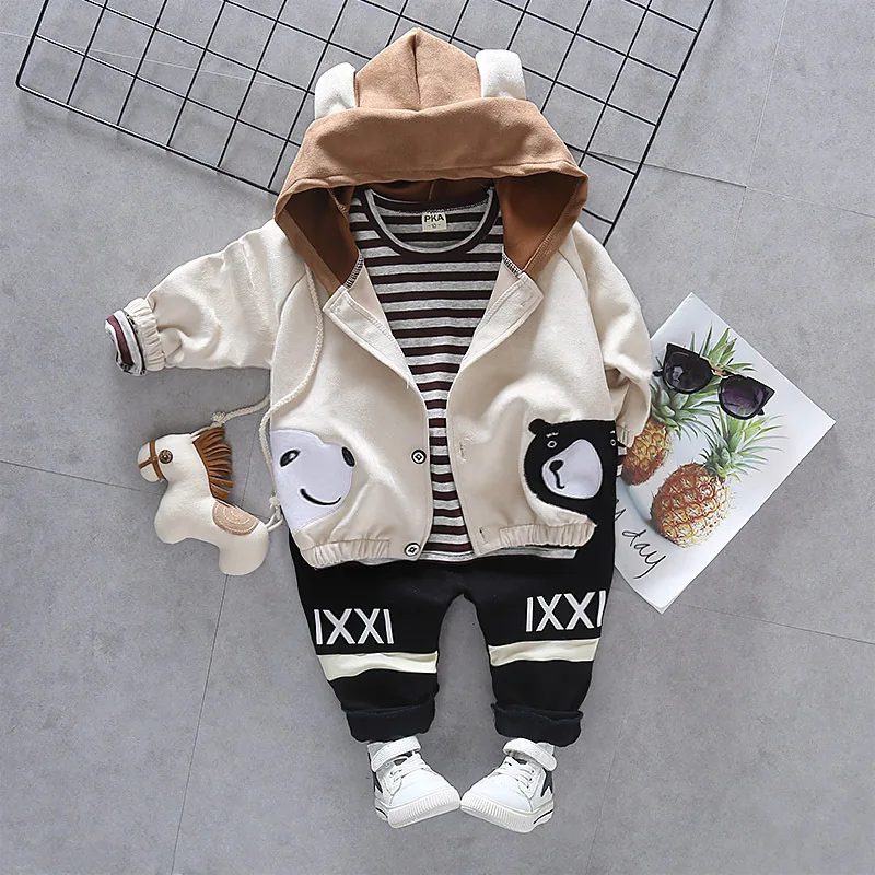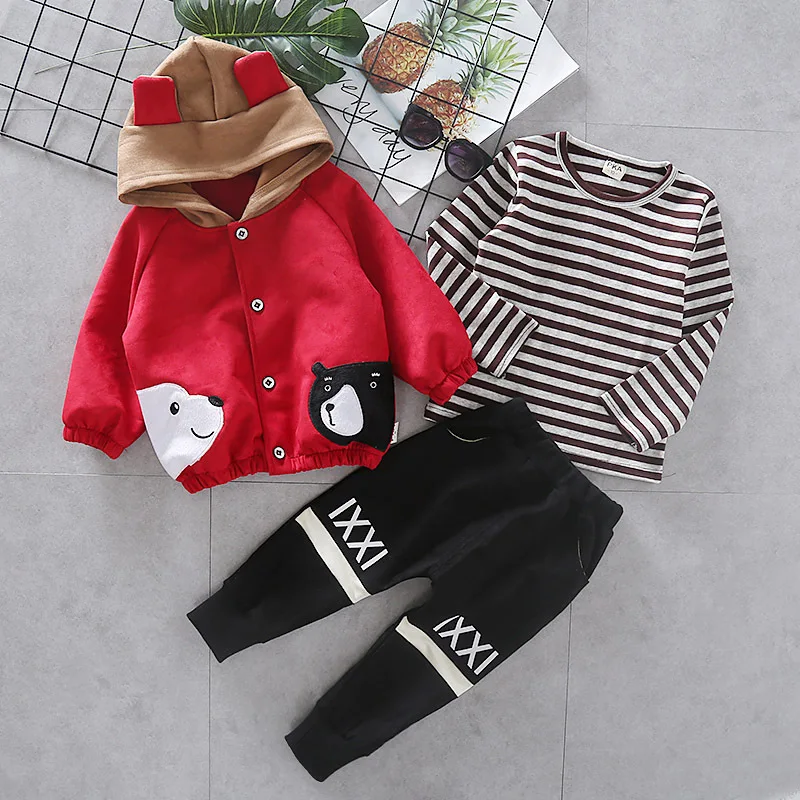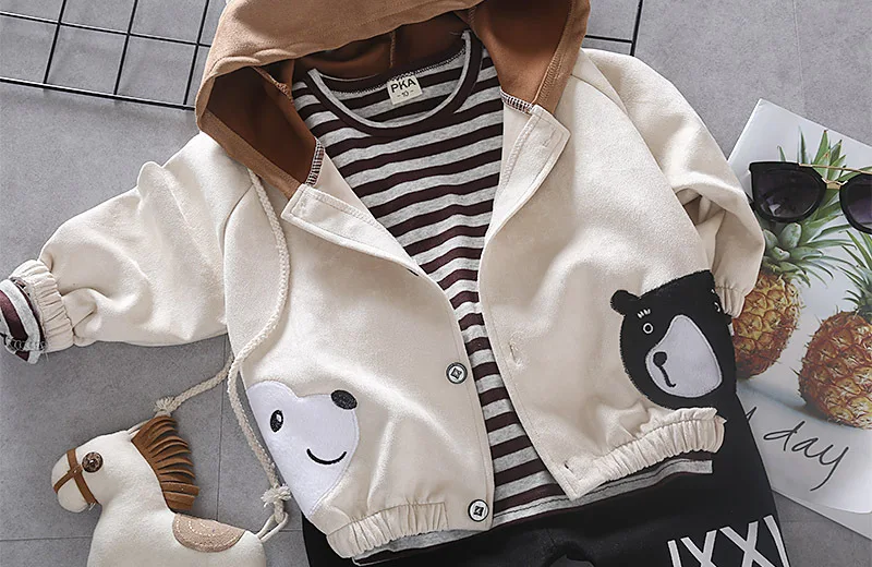Children Girls Boys Cotton Clothing Spring Autumn Kid Cartoon Hooded Jacket Stripe T-Shirt Pants 3Pcs/Set Fashion Baby Tracksuit