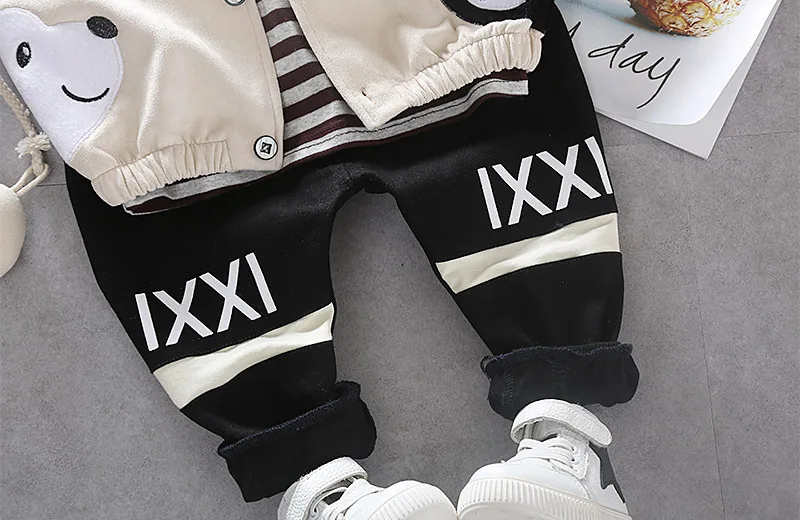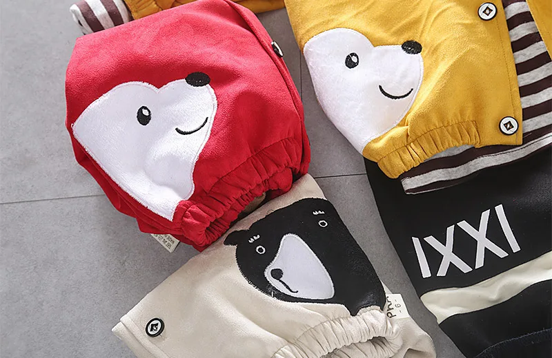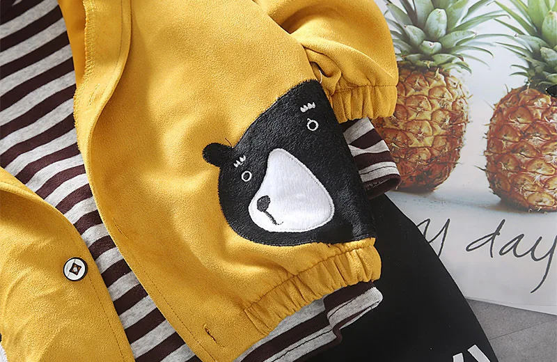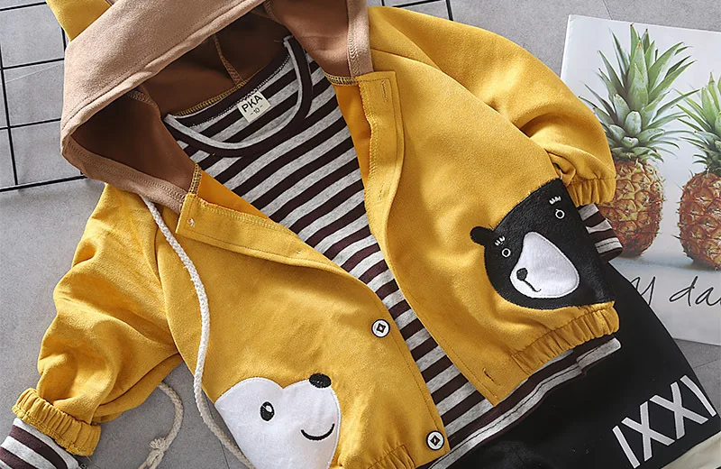 2019 Children Girls Boys Cotton Clothing Spring Autumn Kid Cartoon Hooded Jacket Stripe T-Shirt Pants 3Pcs/Set Fashion Baby Tracksuit For 0-4 Years