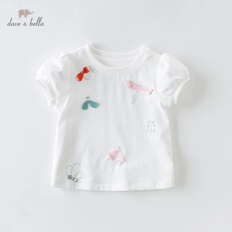 Sale!DB13960 dave bella summer baby girls bow cartoon T-shirt children short sleeve tops girls cute pullover kids fashion tees
