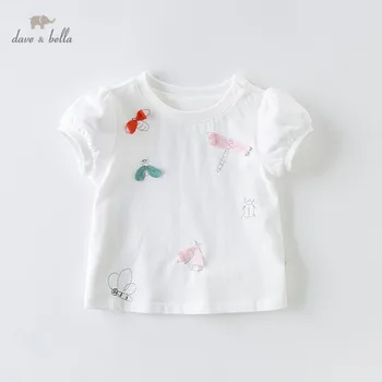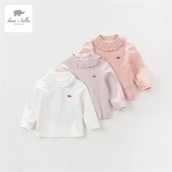 Sale!DB10228 dave bella summer baby girls T-shirt children solid tops girls high quality pullover kids lolita tees
