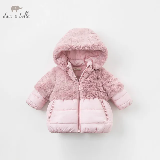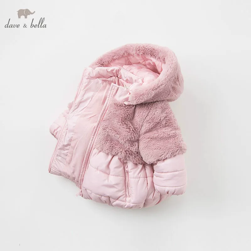 DBA7949 dave bella winter baby girls pink hooded coat infant padded jacket children high quality coat kids padded outerwear