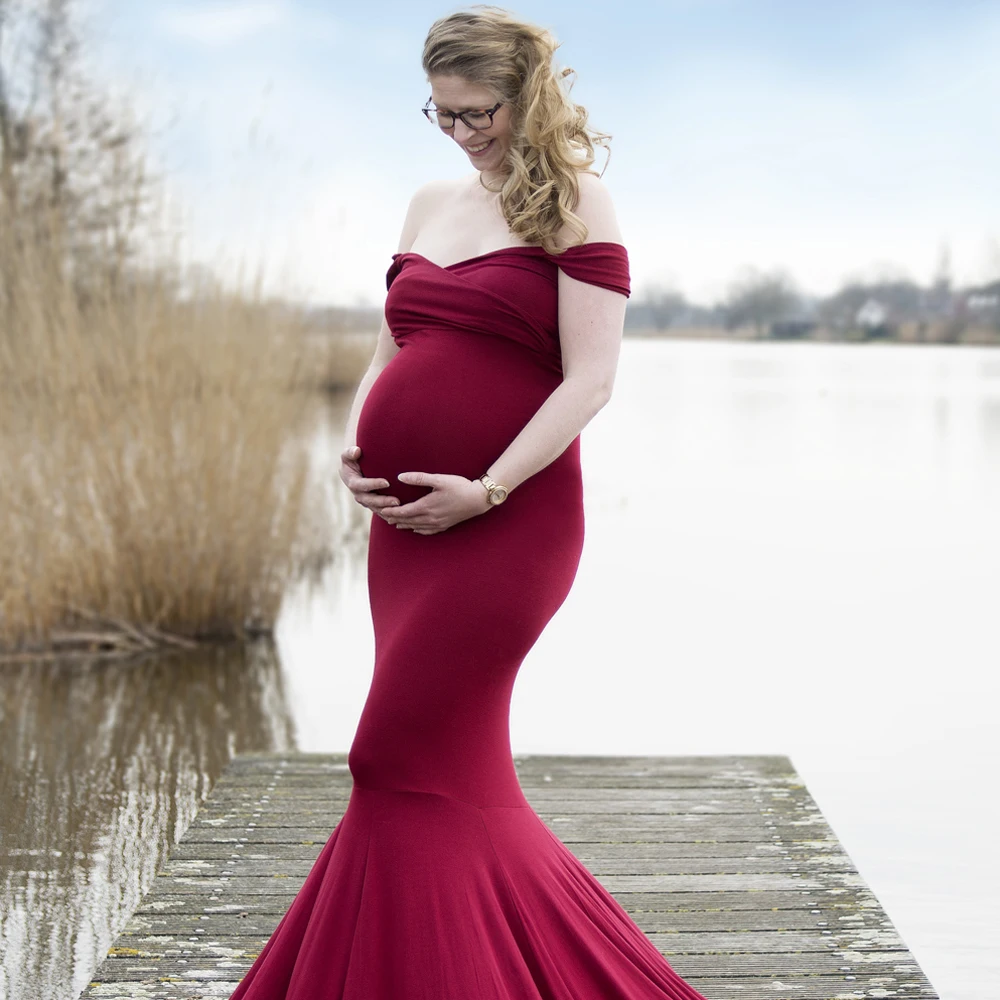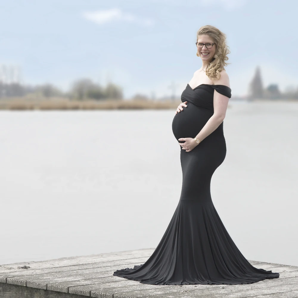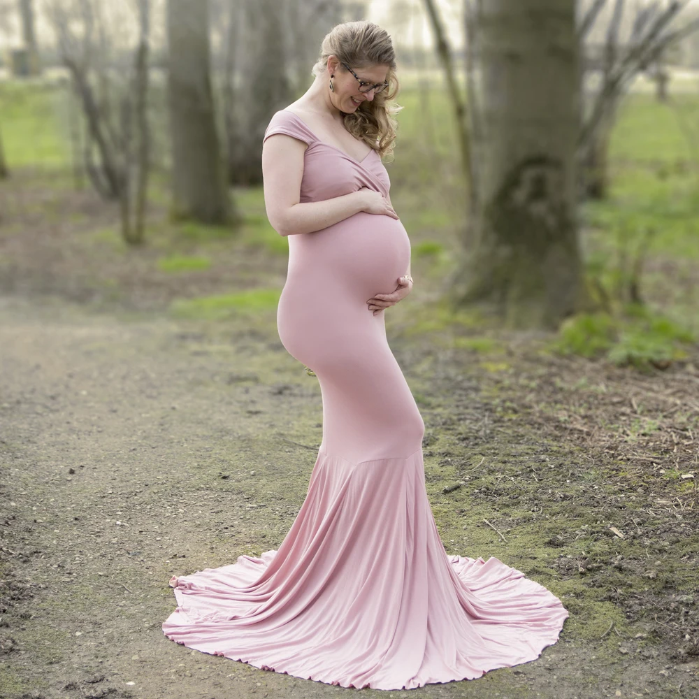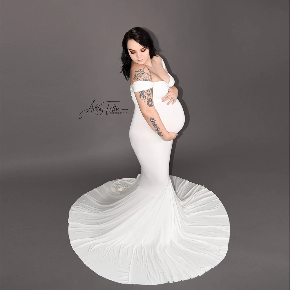 Don&Judy Maternity Dress for Photography Pregnancy Off Shoulder Cotton Long Pregnancy Dress Baby Shower Dress For Photo Shoot
