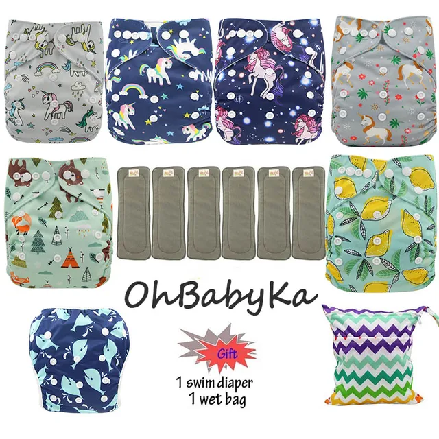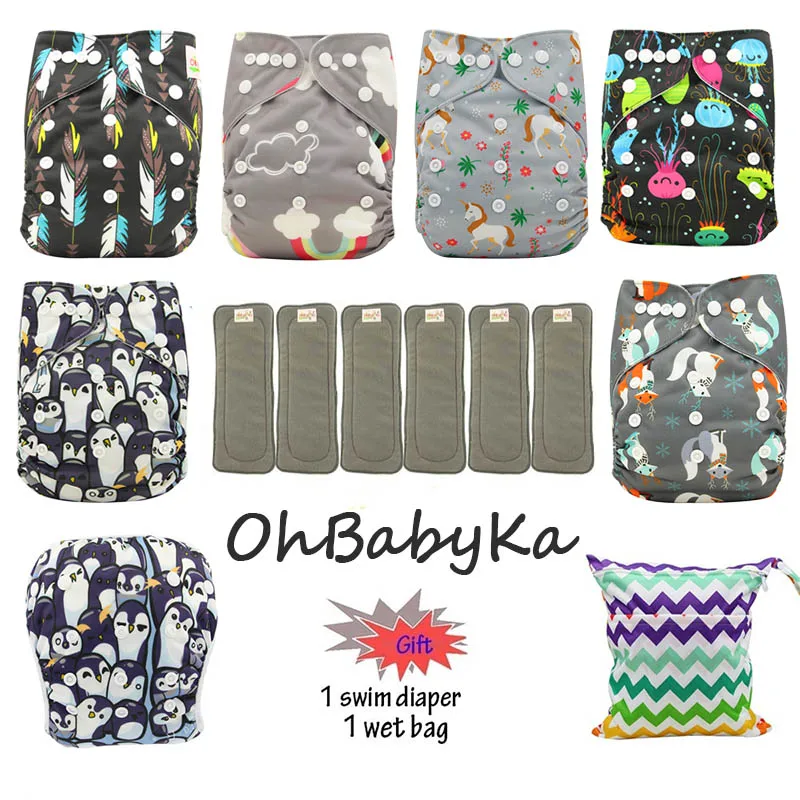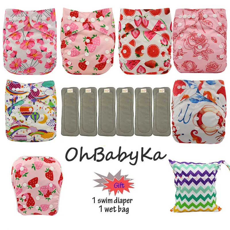 FREE Gift!Reusable Pocket Adjustable Baby Nappies Suede Cloth Inner Cloth Diaper Washable Ohbabyka Bamboo Charcoal Inserts