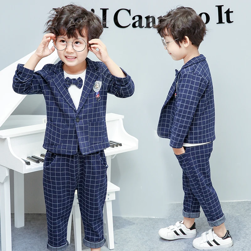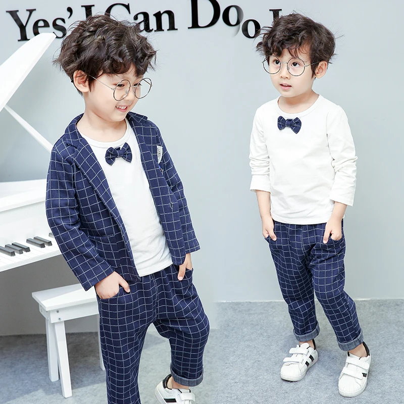 Infant Baby 2019 New Autumn Boys Suits Blazers Fashion White Shirts Plaid Tops Long Pants 3pcs Set Cotton Chlidren Clothing Sets