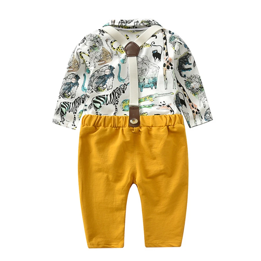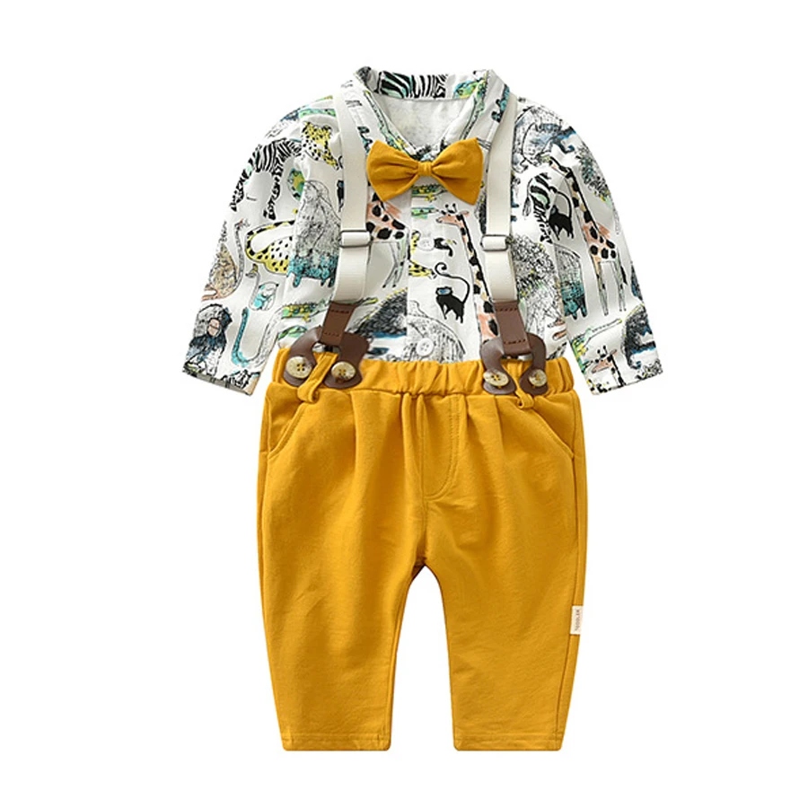 IYEAL Baby Boy Gentleman Clothes Set Autumn Suit For Toddler Kid Formal Party Bow Bodysuit Set 0-24 M Infant Boy Clothing 2PCS