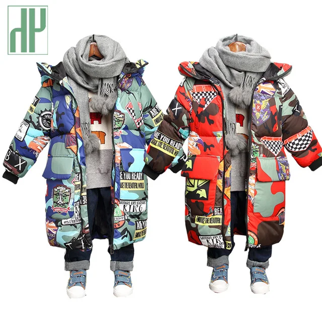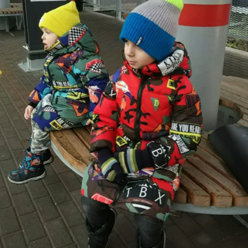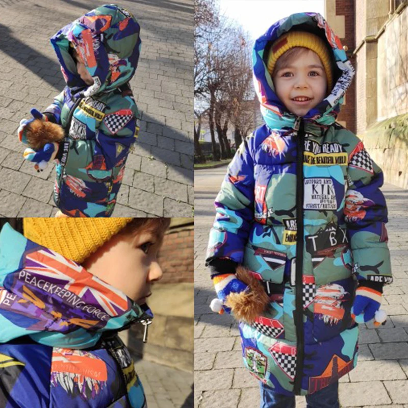 Kids winter jacket Hooded Winter Jackets Graffiti Camouflage Parkas For Teenagers Boys girls Thick Long Coat Kids Clothes