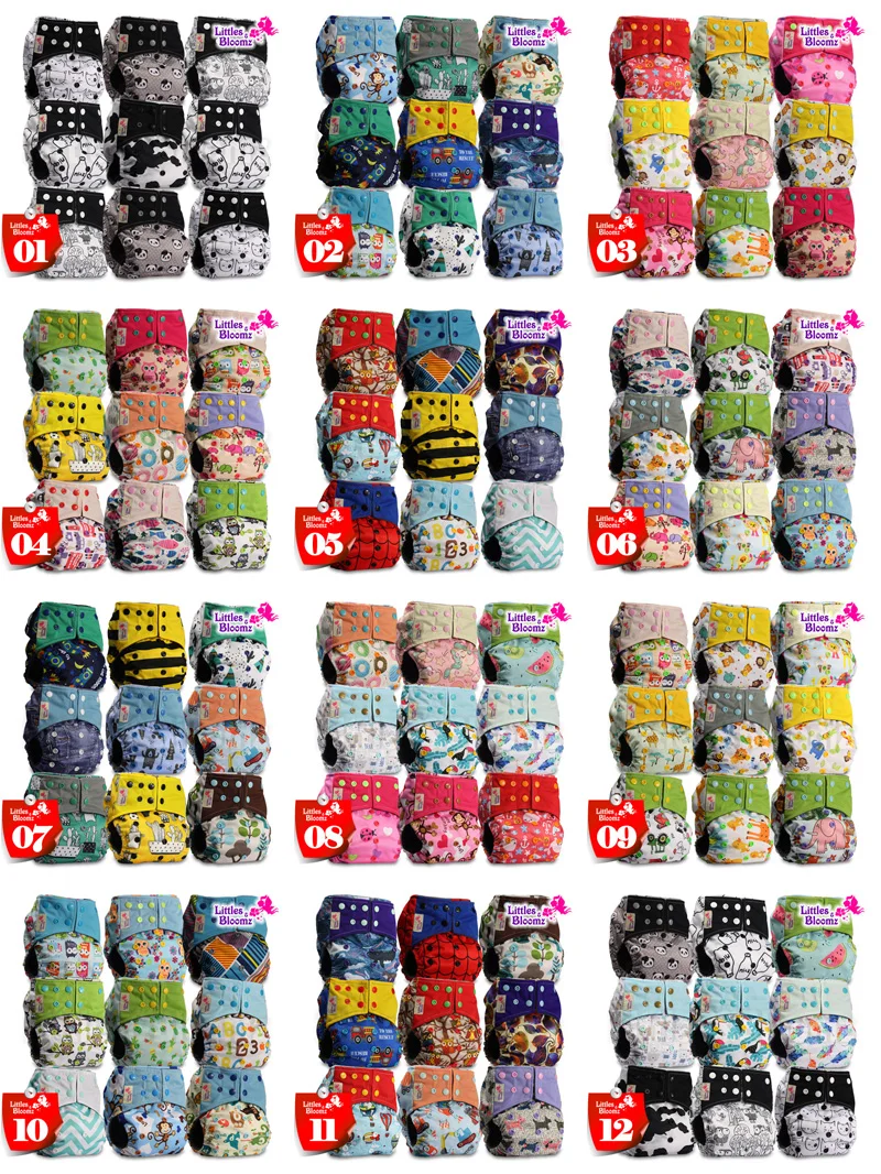 [Littles&Bloomz] 9pcs/set BAMBOO CHARCOAL Washable Real Cloth Pocket Nappy, 9 nappies/diapers and 0 insert in one set Free Ship