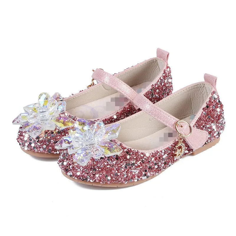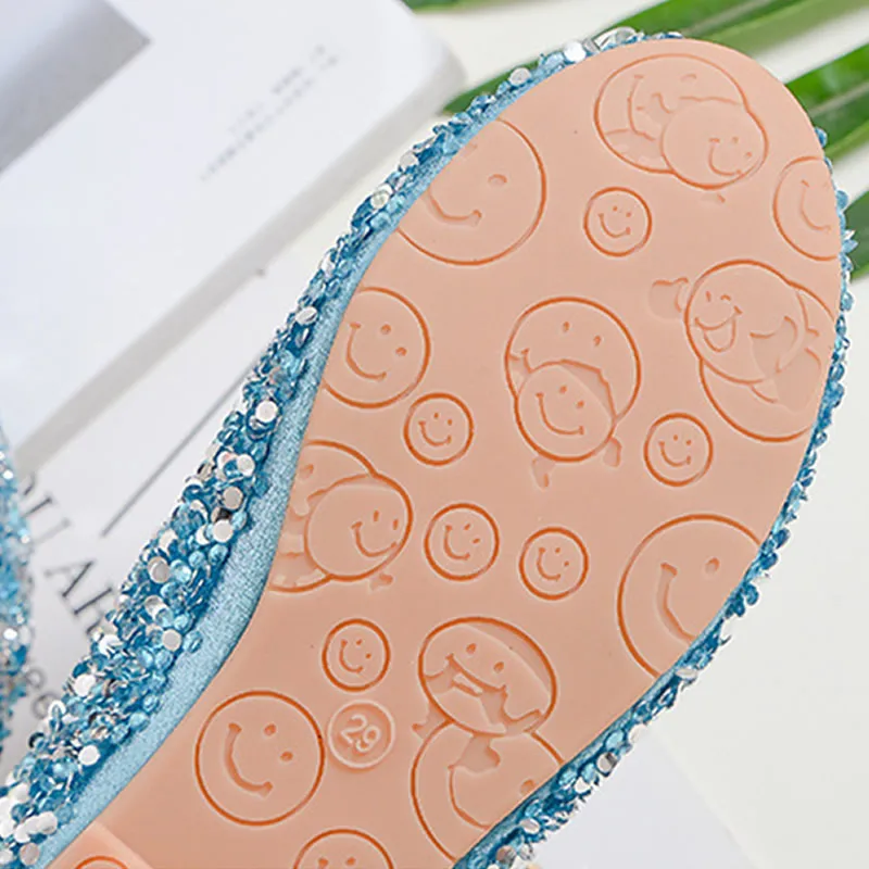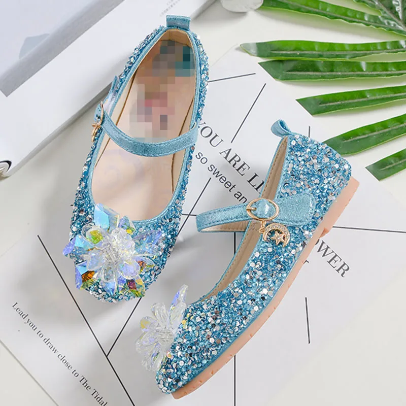 MUABABY Elsa Princess Sandals for Girls Glitter Flat Shoes Baby Crystal Snowflake Elza Shoes Halloween Dancing Party Accessories