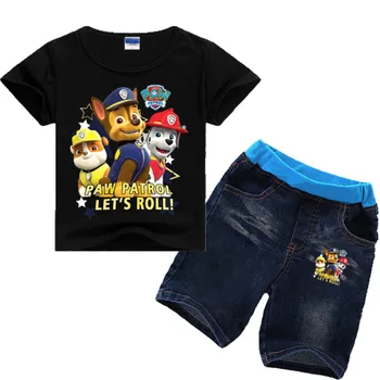 Sale!Paw Patrol 2019 new summer dress European and American style cartoon print casual multi-color stitching short sleeve suit