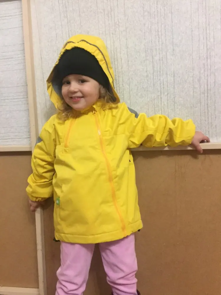 The jacket came almost a month before Mo. The quality is good, the threads do not stick out, there is a smell, but it’s not critical. The child’s height is 92 cm and we are thin, we took the size 3 T, we were too big, will be on the growth) the color is not as bright as in the picture. Seller sociable In general, everything has arranged us!! Thank you very much!!