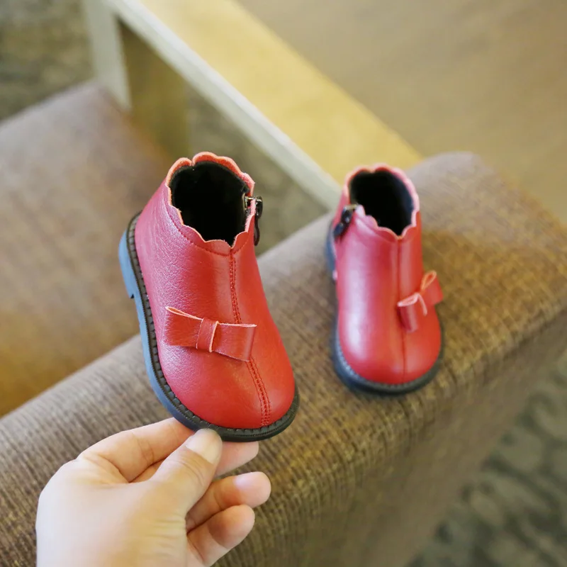 New Winter Baby Cotton Shoes Winter Genuine Leather Girls Snow Boots Bow Baby Toddler Shoes Toddler Moccasins First Walkers