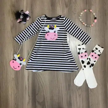 spring/winter baby girls outfits dress black stripe cow cotton milk silk clothes knee length match socks bow necklace and purse$55.50 Select options