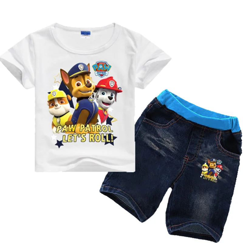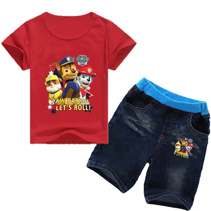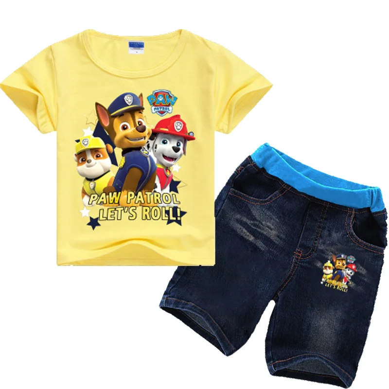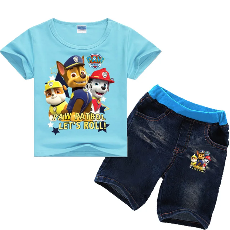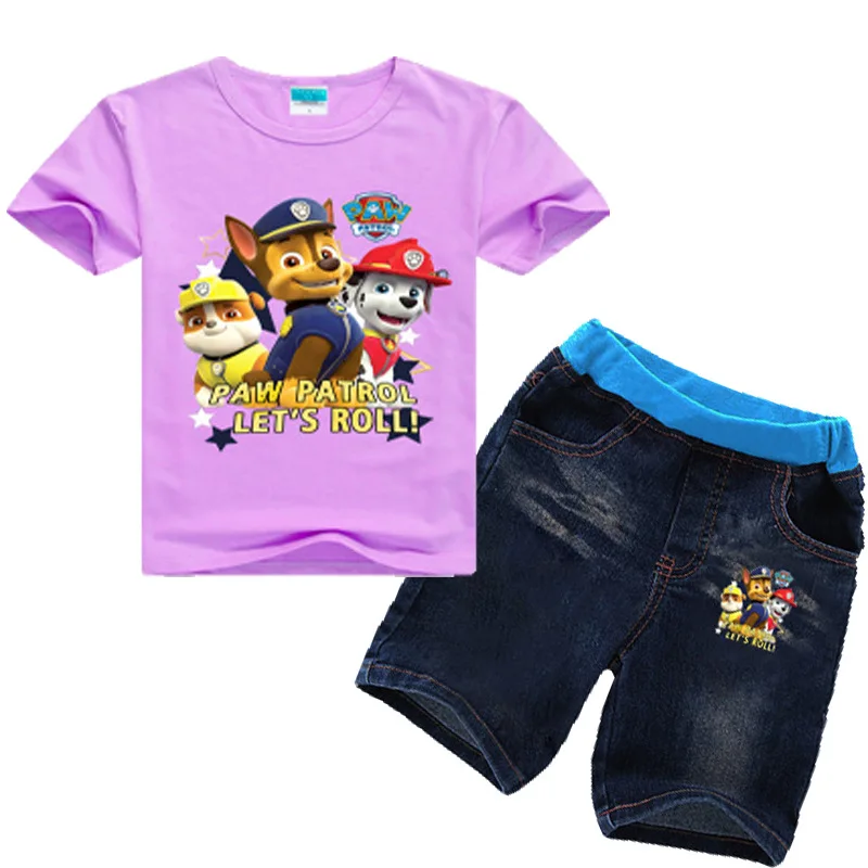 Paw Patrol 2019 new summer dress European and American style cartoon print casual multi-color stitching short sleeve suit