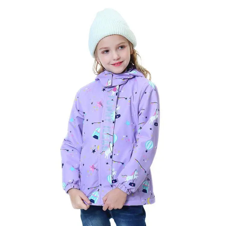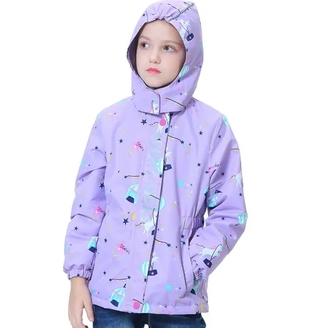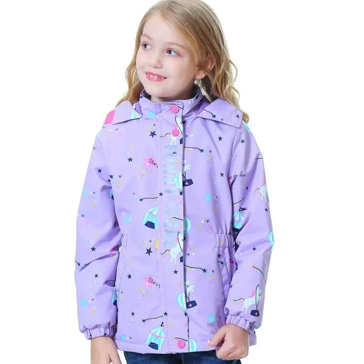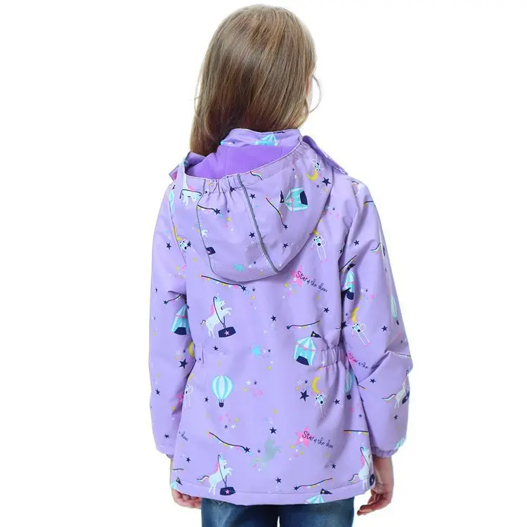 Spring Autumn Waterproof Fleece Liner Cartoon Print Baby Girls Jackets Child Coat Kids Outfits Children Outerwear 3-12 Years Old