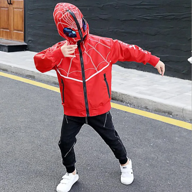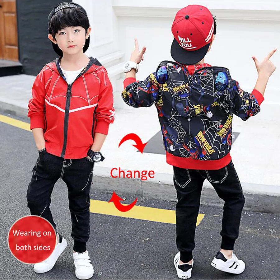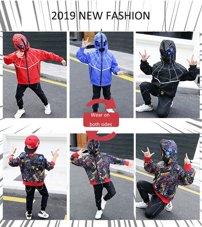Spring Children clothing boy jacket 2019 new fashion spider man boys Coat sports Jacket cartoon hooded casual two-sided coat red