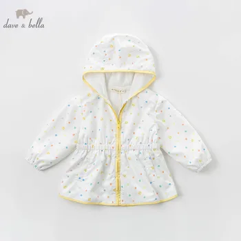 Sale!DBZ13498 dave bella spring baby girls cute dots hooded pockets zipper coat children tops fashion infant toddler outerwear