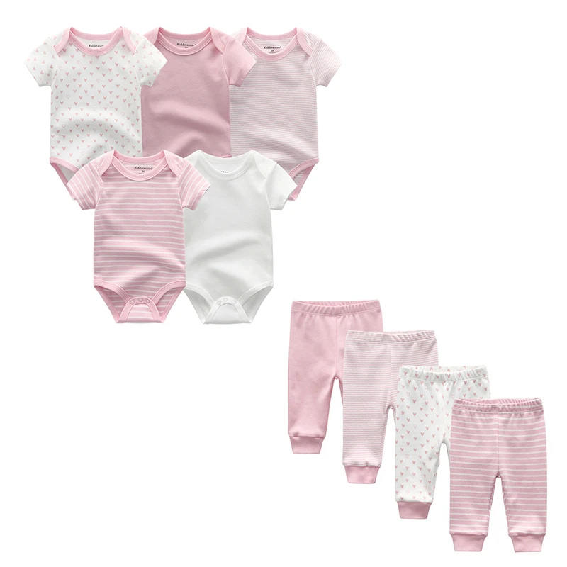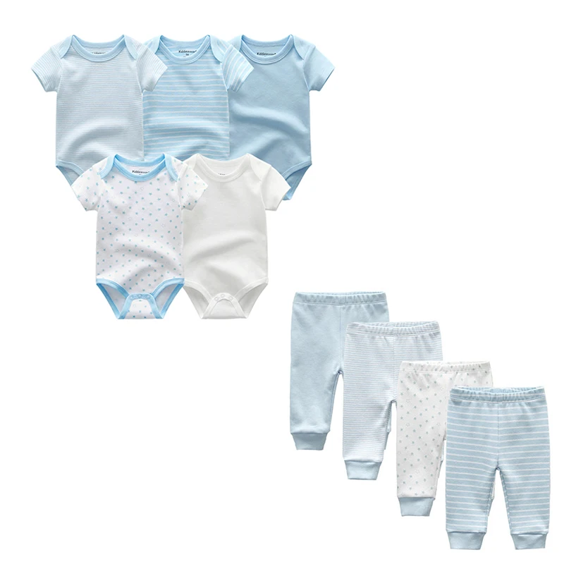 Summer 2020 Unisex Newborn Clothes Short Sleeve 5pcs Baby Rompers+4pcs Baby Pants Cotton 0-12M Clothing Set