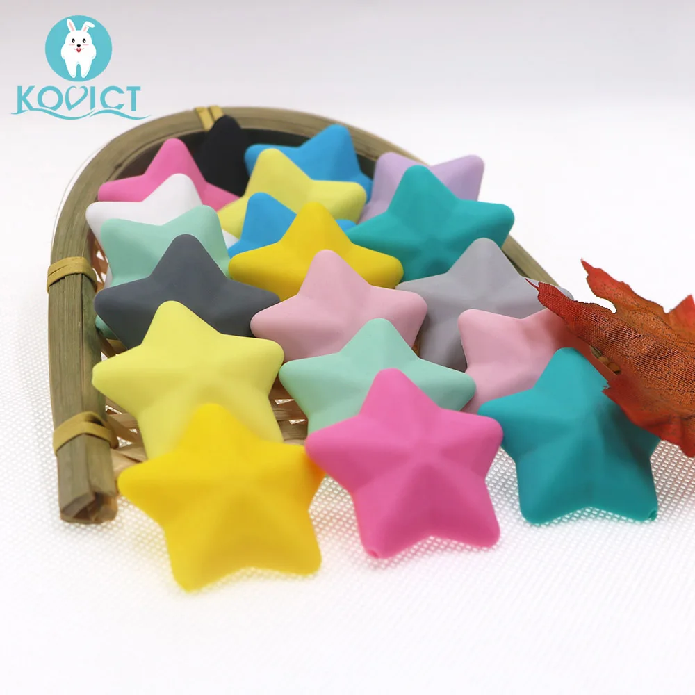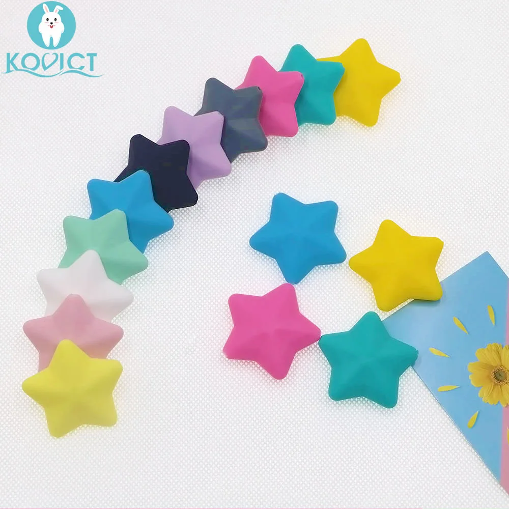 wholesale 50/100/200/500pcs Thicken silicone star beads BPA Free Food Grade Baby Teething DIY Pacifier Chain Pentagram bead