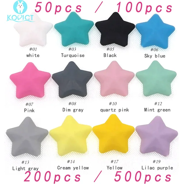 1 review for wholesale 50/100/200/500pcs Thicken silicone star beads BPA Free Food Grade Baby Teething DIY Pacifier Chain Pentagram bead