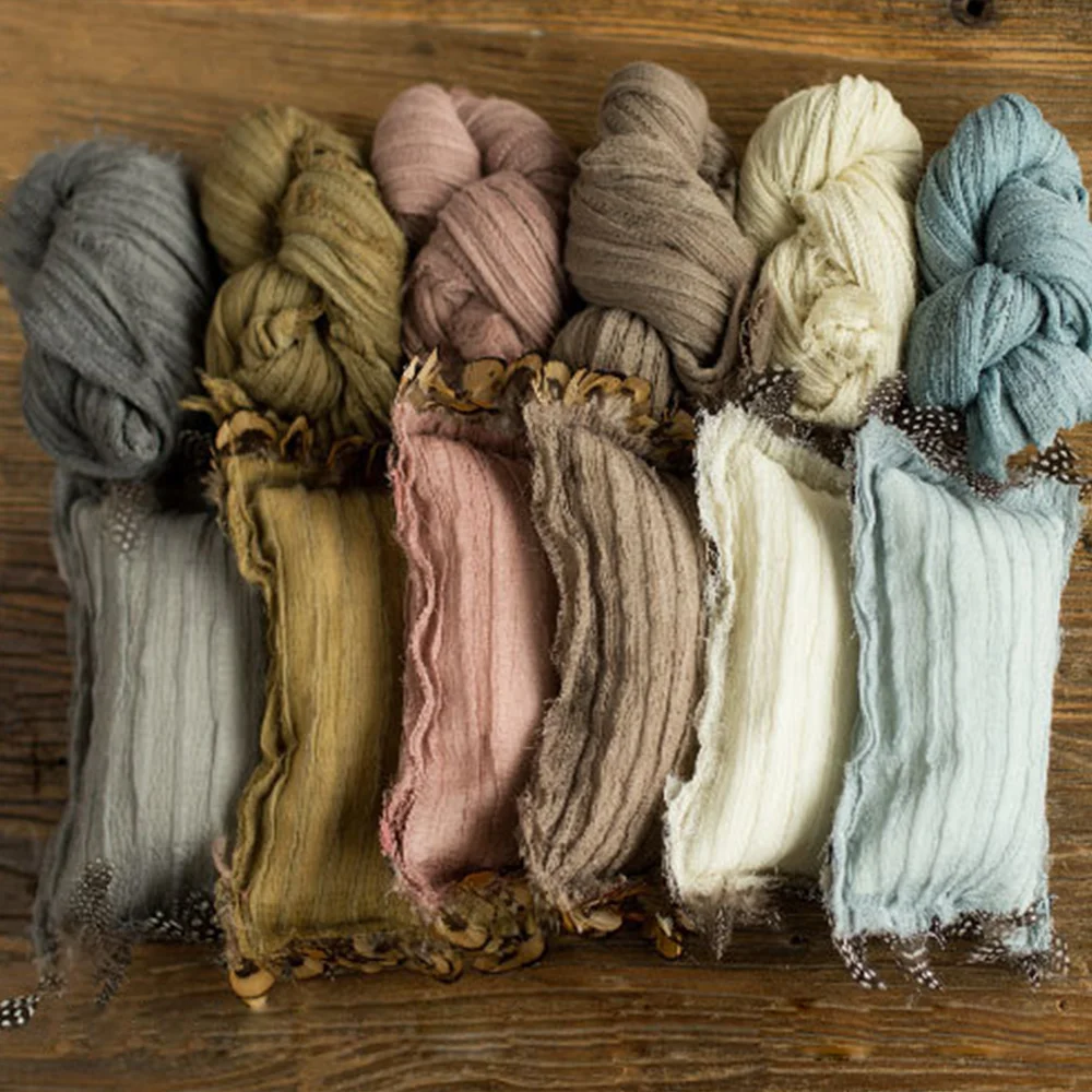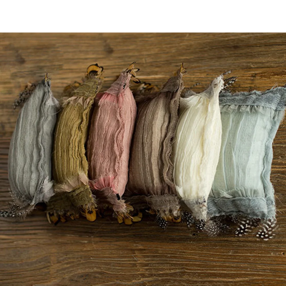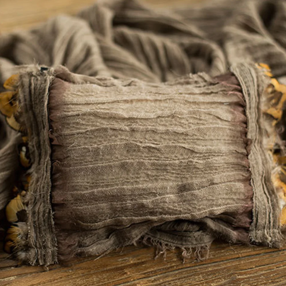Ylsteed 2 Pieces Set Cotton Newborn Photography Wraps Feather Posing Pillow Retro Style Baby Photo Props Photography Blanket